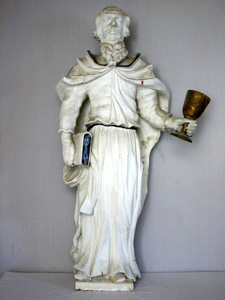 Die Figur nach der Freilegung und Neufassung des weißen Fonds in Glutinleimfarbe